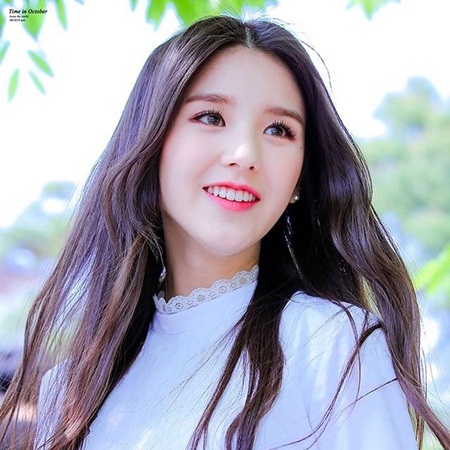 Fromis_9 được thành lập trong chương trình thực tế Idol School và ra mắt vào tháng 1/2018. Trong MV "To Heart" các cô gái hóa thân thành những nữ sinh xinh đẹp. Với đôi mắt sáng trong và nụ cười thuần khiết, Jiheon thực sự đã giành được điểm A+ từ các fan vì ngoại hình của mình.