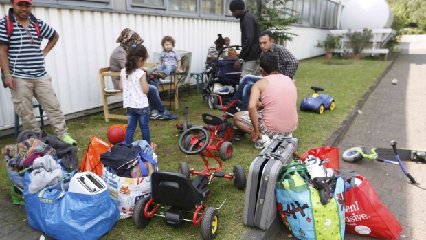 Người tị nạn từ Syria và các nơi khác nhận hàng hóa, thực phẩm từ các nhà tài trợ tại một trung tâm cho người tỵ nạn ở Đức. (Ảnh: Reuters) |