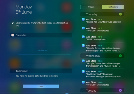 iPad cài iOS 9 sẽ có thể hiển thị các thông báo mới theo 2 cột, thay vì chỉ một cột như ở iOS 8.