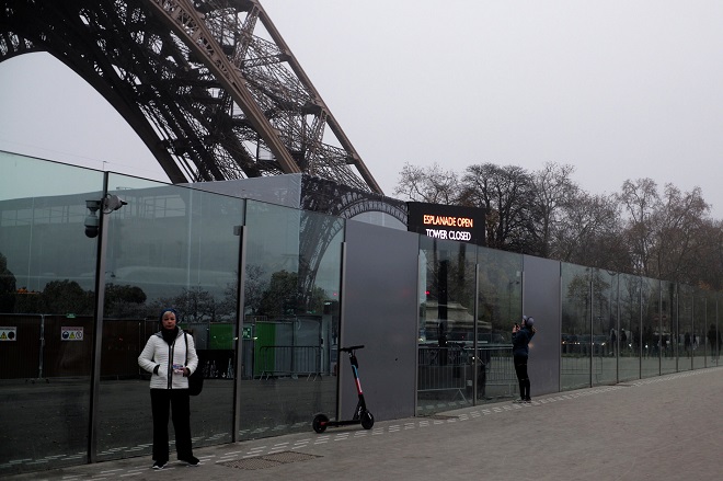 Tháp Eiffel đóng cửa. Ảnh: New York Times |