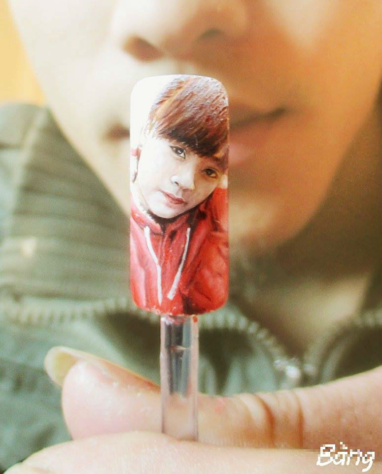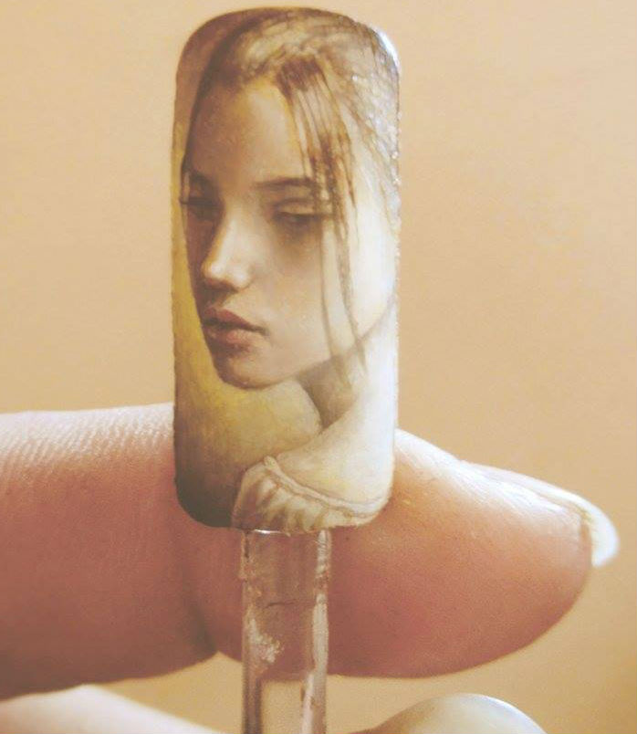 ![]() Tác phẩm chân dung độc đáo trên móng tay. |