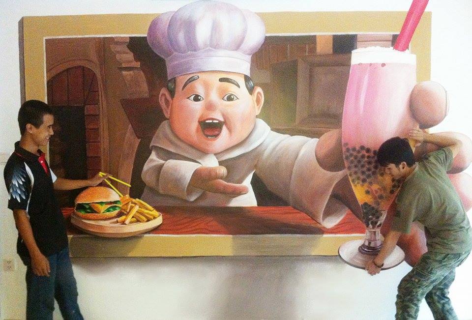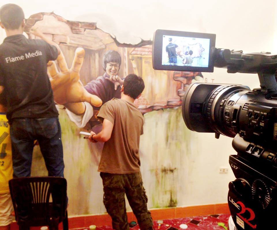 ![]() Chàng trai đang trong quá trình hoàn thiện tranh 3D. |