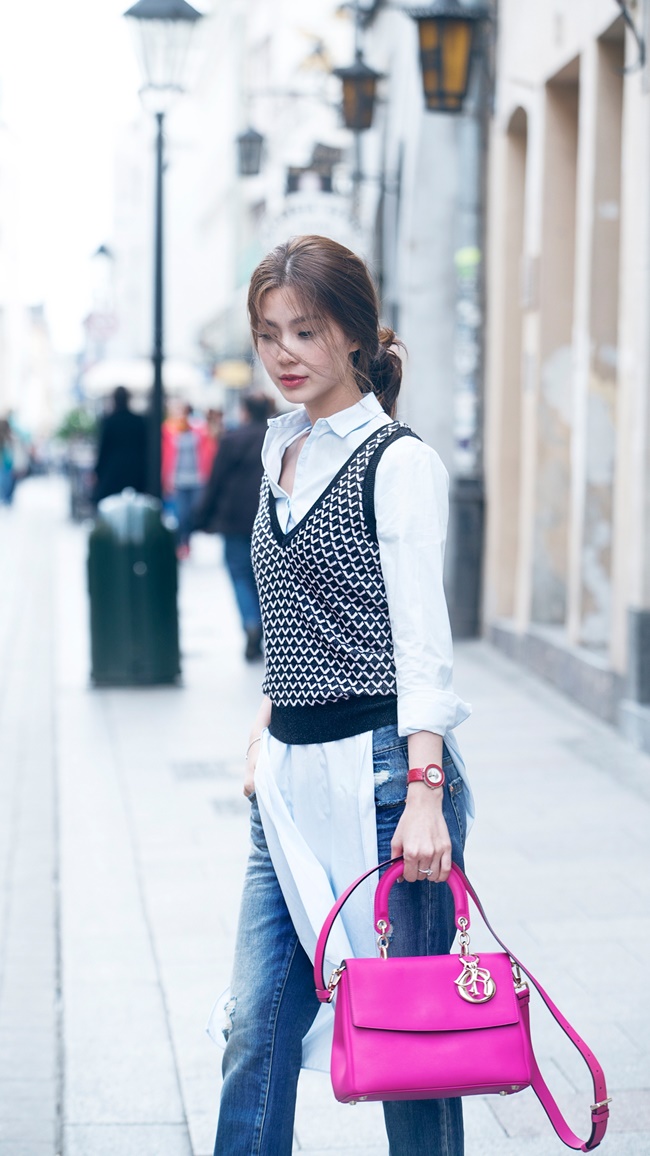 | Trong tiết trời thu của Châu Âu, Diễm Trang diện trang phục đơn giản nhưng được nhận xét là đẹp và có cá tính riêng. |