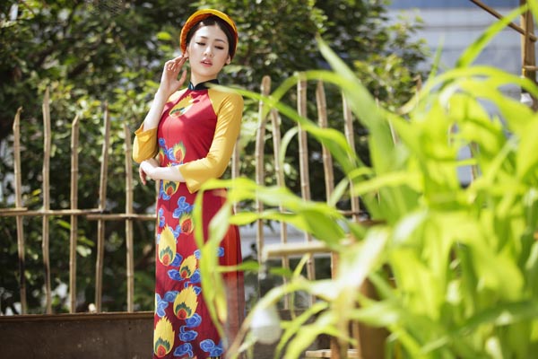 | Khác với hình ảnh sang trọng mỗi khi đi sự kiện, Tú Anh hóa thân thành cô Tấm dịu dàng trong chiếc áo dài thuần Việt. |