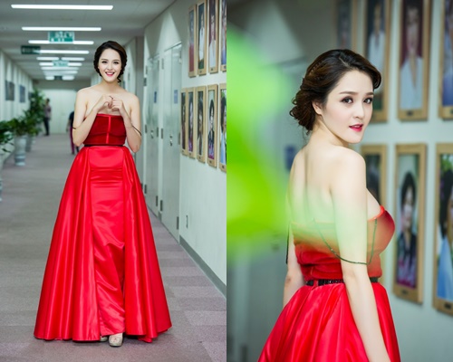 (ĐSPL) - Á hậu Hoàng Anh nổi bật trong sự kiện với bộ đầm đỏ quyến rũ của nhà thiết kế Hà Duy, tôn lên làn da trắng cùng vòng 1 gợi cảm.