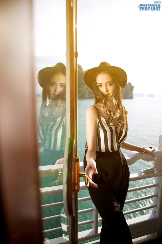 | Á hậu Hoàng Anh mang một vẻ đẹp trẻ trung, thanh lịch với độ tuổi đôi mươi cô đang sở hữu trong những bộ cánh mới nhất của Elise. |
