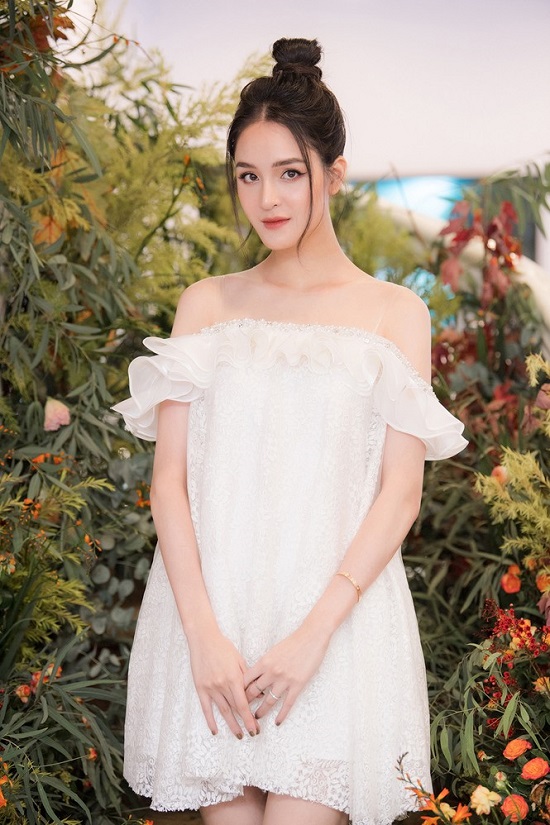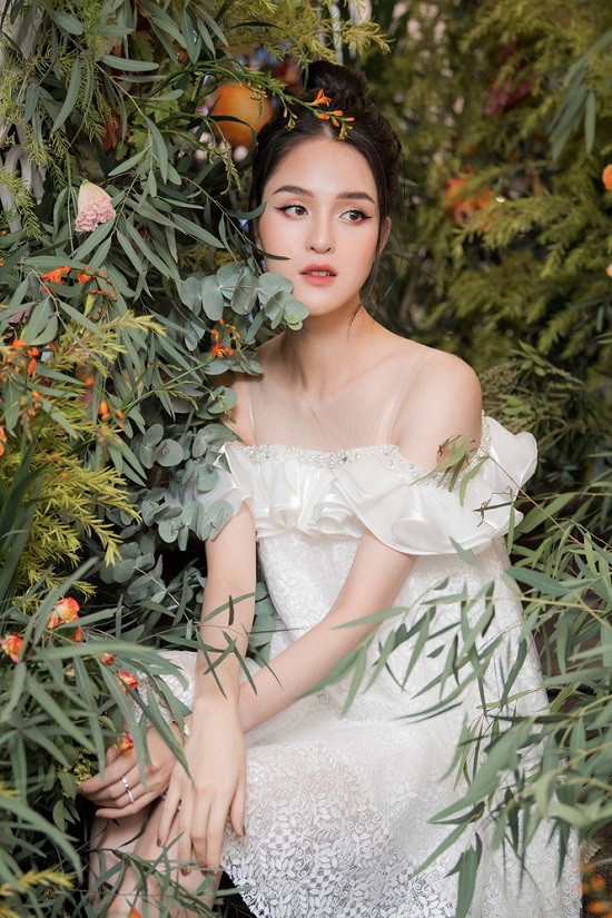 Hoàng Anh lựa chọn bộ váy trắng có kiểu dáng bồng bềnh như một nàng công chúa |