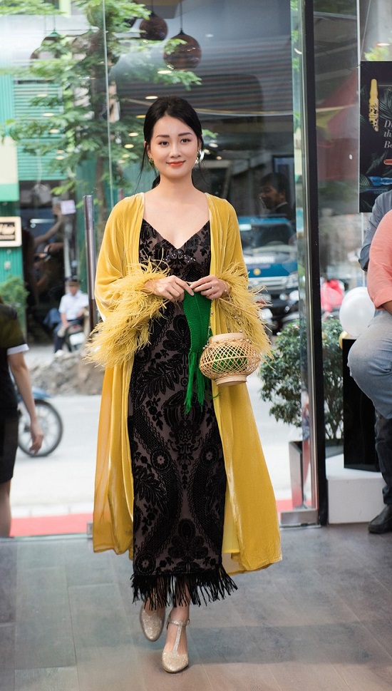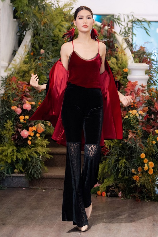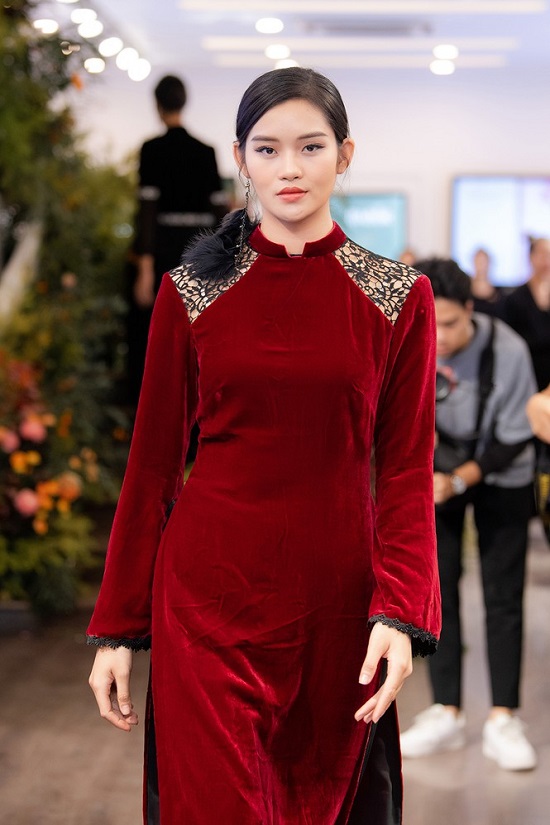 Đến với sự kiện, Hoa hậu Dương Thùy Linh diện áo dài bằng chất liệu nhung với chi tiết cách điệu bằng tua rua đen sang trọng. Mặc dù đã lập gia đình từ lâu và trải qua sinh nở nhưng Dương Thùy Linh vẫn khiến các fans ngưỡng mộ bởi sở hữu hình thể không thua thời con gái.