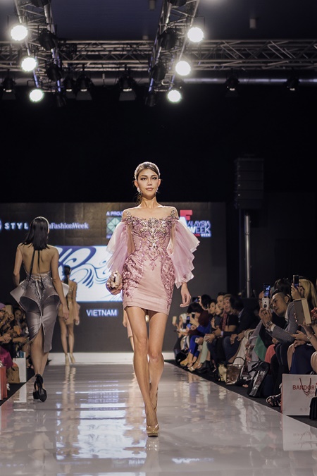 Bên canh bộ váy của Huyền My, hàng loạt những chiếc váy lộng lẫy khác lần lượt được trình làng trên sàn catwalk. Lấy cảm hứng từ thần thoại và những châu chuyện cổ tích, bộ sưu tập nhanh chóng gây dấu ấn với các khán giả và giới mộ điệu thời trang nước bạn.