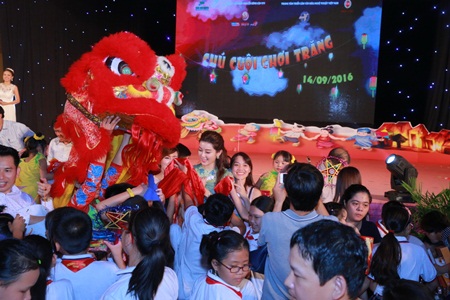 Á hậu Huyền My cùng với nhiều nghệ sĩ khác như Quốc Hùng, Diễm Hằng, Hà Đan, Huy Bách….MC Thanh Vân Hugo, MC Anh Duy đã có mặt tại đêm từ thiện, cùng chung tay đem lại niềm vui cho các em nhỏ vào lễ Trung thu.