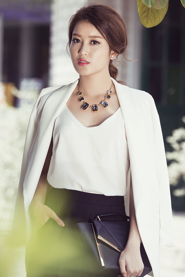 Huyền My trẻ trung với sắc trắng tinh khôi. |