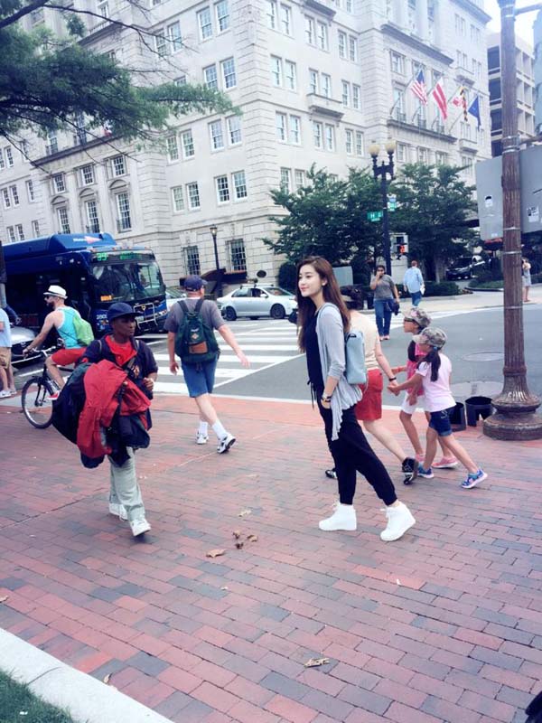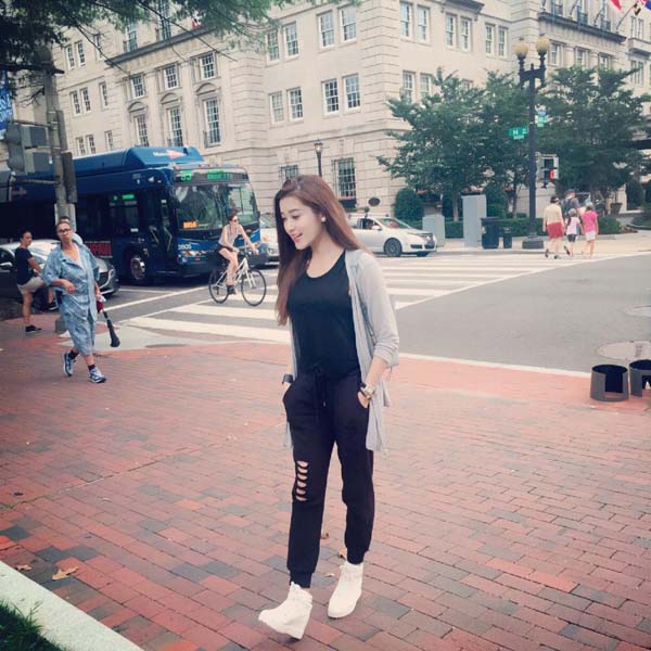 | Từ sân bay quân sự Andrews, bang Maryland cô tranh thủ đi tham quan và giao lưu văn hoá. | Huyền My rất thích thú và hào hứng nên đã chia sẻ những khoảnh khắc đáng yêu của mình trong ngày đầu tiên đặt chân tới Mỹ. |
