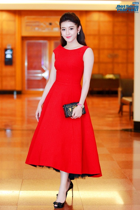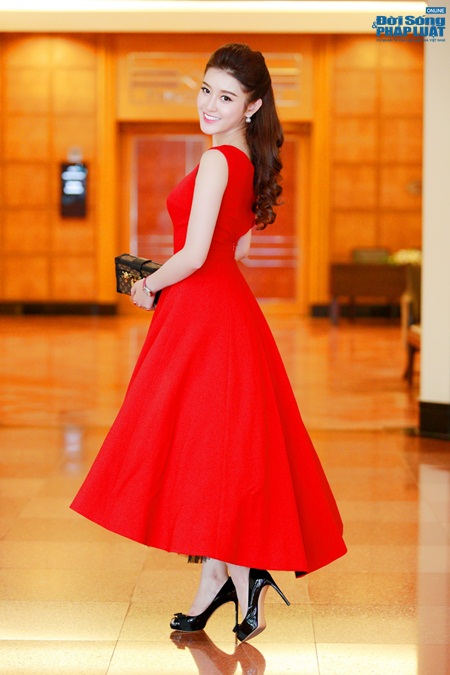 Trải qua hai tháng làm một du học sinh bình thường, Huyền My đùa rằng cô thấy bỡ ngỡ khi trở lại với công việc phải trang điểm và chọn váy áo để tham dự sự kiện. Xuất hiện trong ngày hôm qua, Huyền My khi thì dịu dàng trong bộ váy trắng xếp nếp lãng mạn; lúc lại thanh lịch và nổi bật trong bộ váy xoè đỏ rực của nhà thiết kế Lê Thanh Hoà.