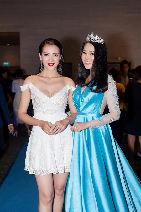 Á hậu Lương Thái Trân gặp gỡ siêu mẫu Anh Thư. Ảnh: Hứa Quý Long |