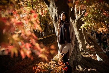 Vì quá mê mẩn trước vẻ đẹp thiên nhiên của Nhật Bản trong ngày đông, Thanh Tú cũng tranh thủ ghi lại những hình ảnh này để làm kỷ niệm. Dưới cái lạnh dưới 10 độ, Thanh Tú khoe vẻ đẹp tràn đầy sức sống của tuổi trẻ, cô nổi bật giữa những cây phong lá đỏ với đôi vai trần và cặp chân dài miên man.
