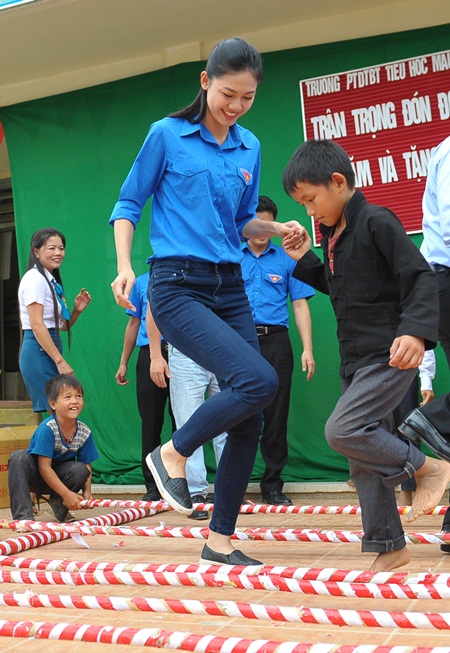 (ĐSPL) - Sau đăng quang, Á hậu 1 Ngô Thanh Thanh Tú đã có chuyến thiện nguyện ý nghĩa tại 2 huyện miền núi Yên Minh và Mèo Vạc của tỉnh Hà Giang. Trong chuyến đi này, người đẹp chọn trang phục phù hợp với công tác đoàn là áo xanh tình nguyện và quần jeans, phong cách trang điểm nhẹ nhàng. Dù khá đơn giản những Thanh Tú vẫn toát lên vẻ đẹp trẻ trung, năng động và tràn đầy nhiệt huyết.