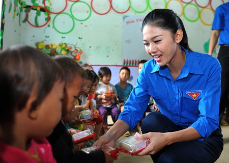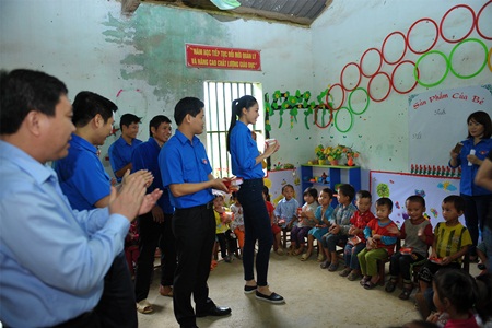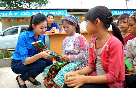 Ngoài ra, Đoàn còn tới thăm và tặng quà cho các em học sinh điểm trường xã Đông Hà (huyện Quản Bạ). Trong không khí vui Tết Trung thu sớm, tại huyện Mèo Vạc đã tham gia chương trình giao lưu văn nghệ “Đêm hội Trăng Rằm” với nhiều tiết mục văn nghệ sôi nổi; tổ chức cắm trại, phá cỗ... Dịp này, T.Ư Đoàn đã trao tặng 60 suất học bổng Vừ A Dính và quà cho các em học sinh học giỏi vượt khó.