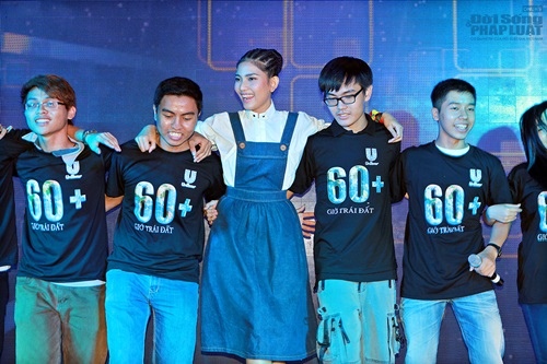 (ĐSPL) - Á hậu Trương Thị May đã có buổi giao lưu với các bạn tình nguyện viên tham gia chiến dịch Giờ trái đất 2014 tại TP.HCM tối qua (17/3).