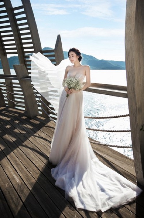 Bộ ảnh cưới của vợ chồng người đẹp được thực hiện với sự hỗ trợ của stylist Đinh Thanh Long. rang phục do nhà thiết kế Phương Linh đảm nhận.Ảnh: FBNV