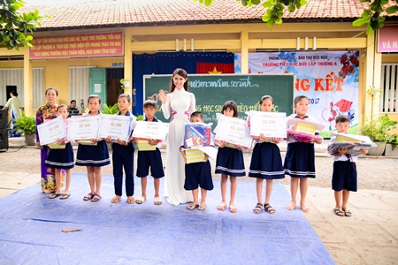 Sau buổi lễ tổng kết, các em học sinh còn vây quanh chụp hình cùng Á Khôi Liên Phương. Người đẹp chia sẻ: “Liên Phương rất vui và bất ngờ trước tình cảm của các em học sinh và thầy cô dành cho mình. Dự án Ươm Mầm Xanh được thực hiện hy vọng sẽ giúp đỡ phần nào những em học sinh có hoàn cảnh khó khăn. Trong tương lai, Liên Phương sẽ cố gắng hơn nữa để cùng san sẻ đến các em và đây cũng chính là ước mơ từ bé của Liên Phương”.