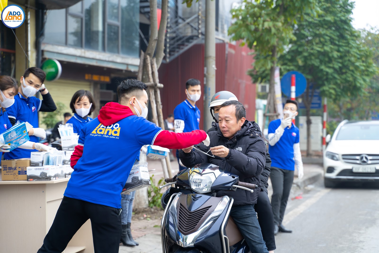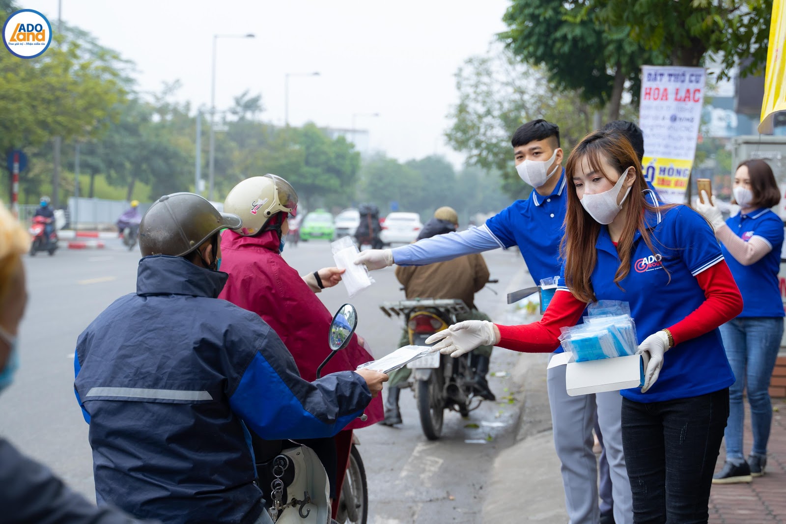| Đội ngũ nhân viên ADOLAND thực hiện chiến dịch phát khẩu trang miễn phí |