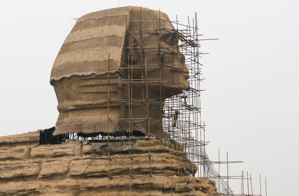 Bức tượng nhái mô phỏng lại một trong những công trình nổi tiếng nhất thế giới, vốn được thấy trên cao nguyên Giza, bờ phía tây của sông Nile từ cách đây hơn 4.000 năm.