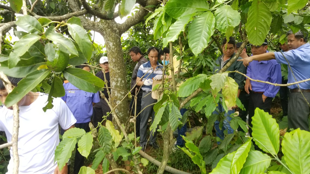 Công an tỉnh Lâm Đồng phối hợp cùng các đơn vị liên quan thực hiện việc khám nghiệm hiện trường vụ 3 bà cháu bị sát hại, chôn xác trong vườn cà phê.