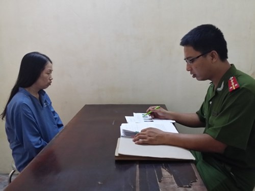 Điều tra viên lấy lời khai của Nguyễn Thị Lan. |