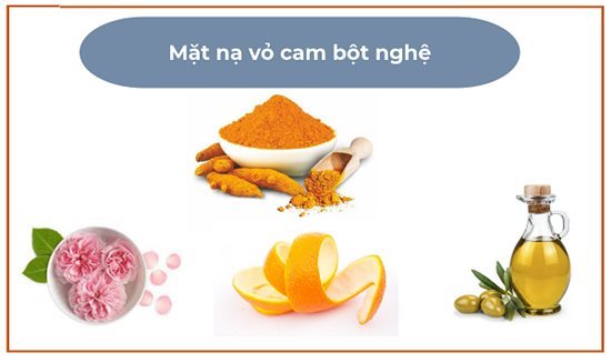 Trộn 1 muỗng canh bột bỏ cam với 1 muỗng canh nghệ, dầu ô liu và 2-3 giọt nước hoa hồng để đắp mặt.