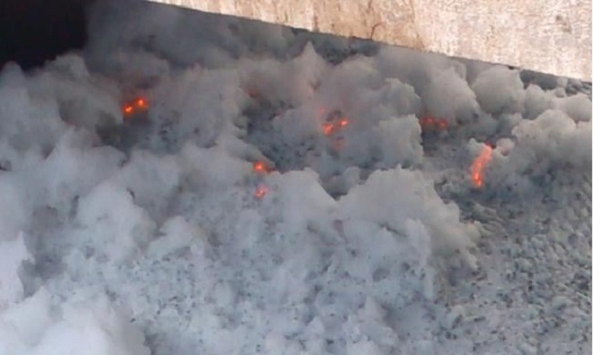 Hồ Bellandur tự dưng bốc cháy là hiện tượng lạ khiến người dân lo lắng. Ảnh Debasish Ghosh. |