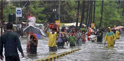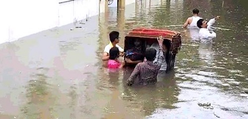 Người dân Ấn Độ phải vật lộn với những khó khăn do ngập lụt gây ra. Ảnh: Thời báo Ấn Độ |