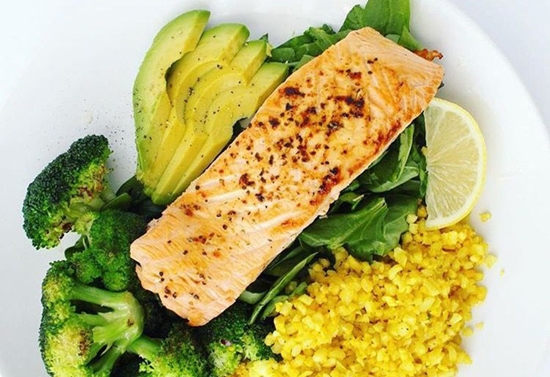Một đĩa cơm chiên nghệ với cá hồi, rau chân vịt và bông cải xanh chứa rất nhiều chất dinh dưỡng giúp tăng sức mạnh của hệ miễn dịch - Ảnh minh họa. |
