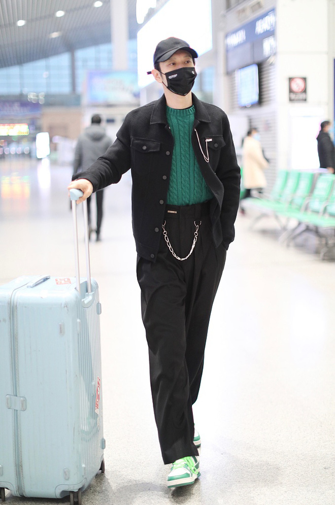Xuất hiện tại sân bay sau khi ghi hình xong show Tỷ Tỷ Đạp Gió Rẽ Sóng gây tranh cãi vì mời Lý Phi Nhi, tài tử họ Huỳnh không giấu được sự mệt mỏi.