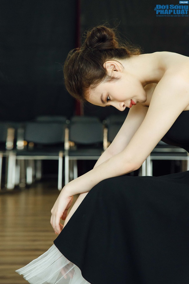 Với bối cảnh sàn tập ballet, nữ diễn viên 20 tuổi hoá thân thành một nghệ sĩ mải mê tập luyện và hoà mình cùng giai điệu âm nhạc cổ điển. Ngoại hình trong sáng kết hợp cùng những động tác uyển chuyển, “Bà mẹ nhí” trở thành một vũ công duyên dáng, không kém phần chuyên nghiệp.