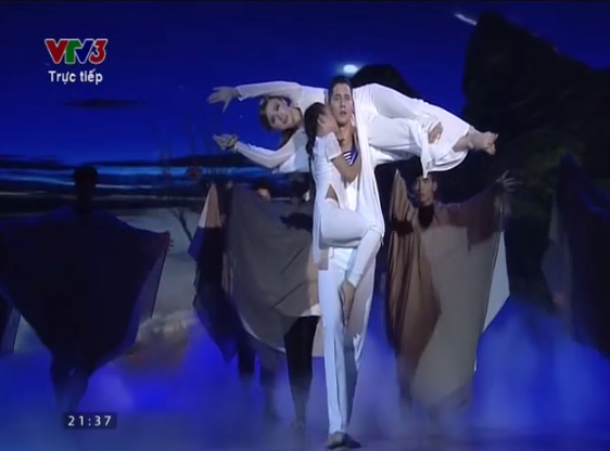Angela Phương Trinh có phần trình diễn vô cùng ấn tượng, ngoài nhảy cô còn cống hiến phần xiếc bay trên cao và lấy đi nước mắt của rất nhiều khán giả. Được biết, Kristian nặng 83kg mà Angela Phương Trinh vẫn có thể kéo được bạn diễn của mình.