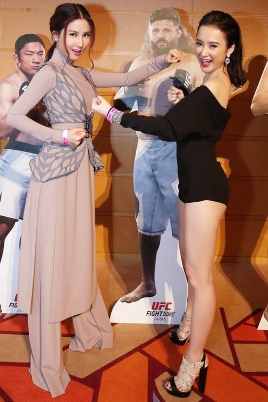 Tham dự họp báo UFC Champion 2015 chiều 25/9, Angela Phương Trinh hút mắt mọi ánh nhìn với bộ đồ gợi cảm. Người đẹp lựa chọn cho mình bộ jumpsuit đen khá đơn giản kết hợp cùng giày cao gót và clutch cầm tay, nhưng điều đáng nói ở đây là phần quần jumpsuit mà Angela Phương Trinh chọn lựa lại có độ ngắn... quá đà, phần quần ngắn khoảng 5cm đã khiến cho nhiều người hiểu nhầm và tưởng rằng người đẹp diện quần bơi khi dự sự kiện.