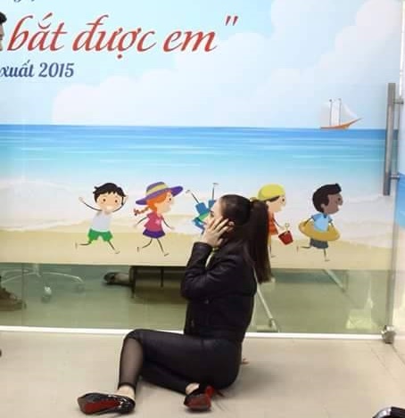 | Hình ảnh Angela Phương Trinh ôm mặt sau khi bị tát và ngồi bệt xuống sàn. |