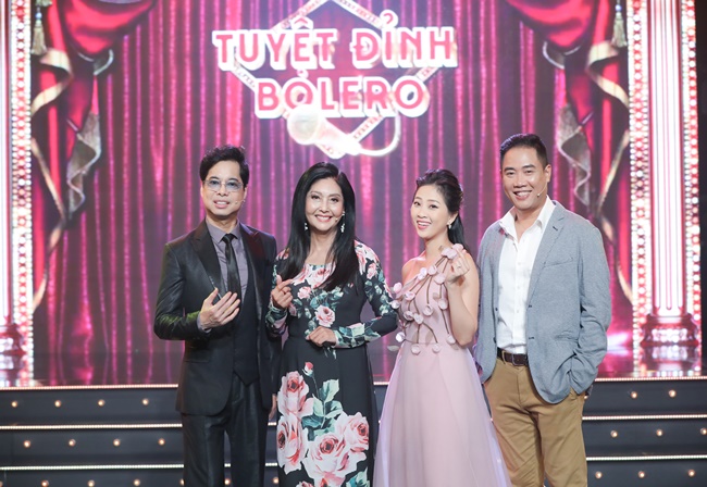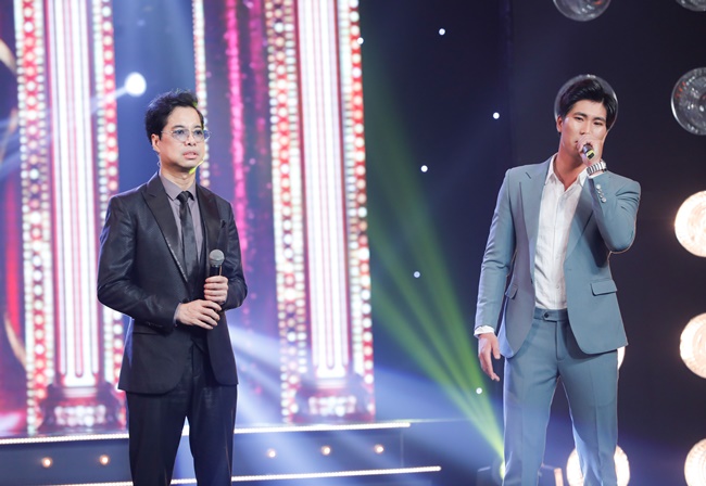 Ngọc Sơn duyên dáng hát hát cùng học trò Hoàng Ngọc Sơn trên sân khấu Tuyệt đỉnh Bolero. |
