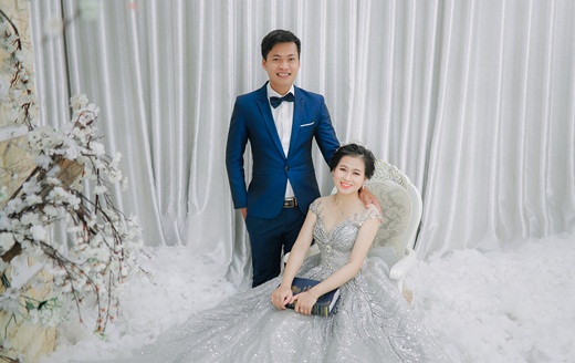 "Hôm 14/02, cũng khoảng 5 tháng tụi mình quen nhau, mình đòi quà nhưng không biết anh sẽ tặng gì. Mình chỉ thấy anh cứ giấu giấu rồi bất ngờ quỳ xuống, đưa nhẫn ra cầu hôn mình. Lúc đó mình đơ luôn, bắt anh phải quỳ cả nửa tiếng để suy nghĩ xem có nên nhận lời không. Thời điểm đó mình vẫn chưa sẵn sàng để kết hôn nhưng anh bảo cứ nhận đi vì không nhất thiết phải kết hôn liền. Nghe vậy thì mình yên tâm nhận lời liền, không ngờ hôm sau anh Hổ nói chuyện với gia đình xem ngày luôn!" - chị Khương vừa cười vui vừa nhớ lại.