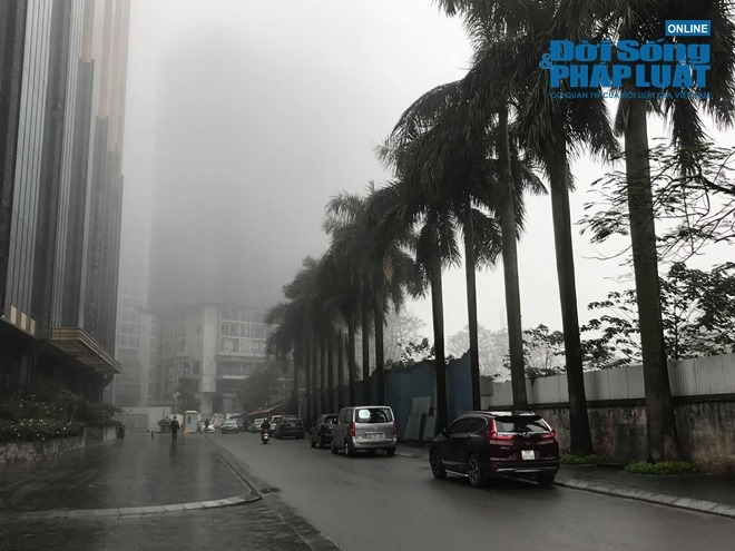 Đến 9h30 ngày 6/2, đường phố Hà Nội vẫn được bao phủ trong lớp sương mù dày đặc. Nhất là khi đứng ở các tòa nhà cao tầng nhìn xuống, tầm nhìn bị hạn chế chỉ thấy một lớp sương mù trắng xóa.