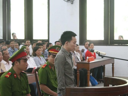 Khoảng 7h50, bị cáo Vinh được lực lượng chức năng áp giải đến hầu tòa. Vừa bước vào tòa, nhìn thấy vợ và con trai chưa đầy 5 tháng tuổi, Vinh đã bật khóc. Trả lời HĐXX, Vinh khai nhận hành vi của mình là sai trái và vô cùng ân hận.