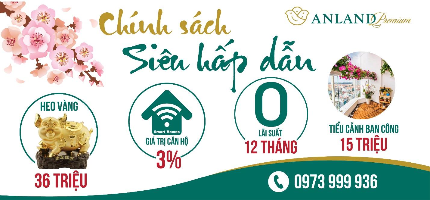 Ngoài tặng heo vàng may mắn, chính sách còn nhiều ưu đãi hấp dẫn như hỗ trợ lãi suất 0% trong vòng 12 tháng kể từ thời điểm giải ngân đầu tiên nếu không khách hàng có thể nhận ngay chiết khấu 2% trên tổng giá trị căn hộ. Bên cạnh đó, sở hữu nhà tại Anland Premium, khách hàng còn được nhận gói Smarthome tương đương với chiết khấu 3% trên tổng giá trị của căn hộ. Chưa hết, khách hàng còn nhận được gói tiểu cảnh trang trí ban công trị giá 15 triệu đồng... Với chính sách này, khách hàng của Dự án Anland Premium không chỉ nhận được ưu đãi về giá mà còn nhận được may mắn hiện hữu ngay trong những ngày đầu năm mới Kỷ Hợi.