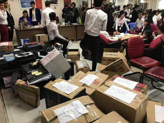 Hai bị can Nguyễn Thái Luyện (34 tuổi, Chủ tịch HĐQT công ty Alibaba) và Nguyễn Thái Lĩnh (30 tuổi, tổng giám đốc công ty này) được áp giải lên xe công vụ đưa đi. Bên cạnh đó, rất nhiều tài liệu tại công ty Alibaba bị công an thu giữ, cho vào hàng trăm thùng các tông, đưa lên xe tải chở đi để phục vụ công tác điều tra.