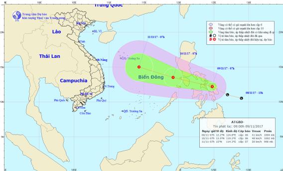 Dự báo, trong 24 giờ tới áp thấp nhiệt đới di chuyển theo hướng Tây Tây Bắc, mỗi giờ đi được khoảng 20km và có khả năng mạnh thêm. Đến 07 giờ ngày 10/11, vị trí tâm áp thấp nhiệt đới ở vào khoảng 13,5 độ Vĩ Bắc; 119,2 độ Kinh Đông, cách quần đảo Hoàng Sa khoảng 850km về phía Đông Nam. Sức gió mạnh nhất ở vùng gần tâm áp thấp nhiệt đới mạnh cấp 6 (40-50km/giờ), giật cấp 8.