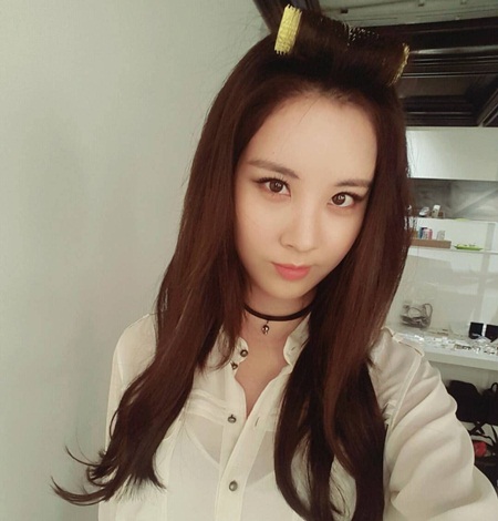 Giống với cô chị cùng nhóm, em út SNSD cũng hay tạo dáng trước ống kính trong khi cuốn lô mái. Mặc dù chưa makeup hoàn chỉnh nhưng trông Seohyun vẫn thật xinh đẹp và tuyệt vời.