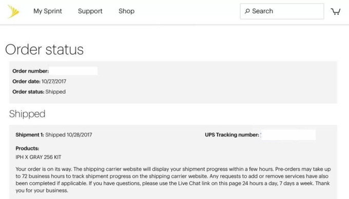 Tin vui là hiện một số hãng vận chuyển đã bắt đầu liên hệ với khách để giao hàng trong thời gian từ 1 - 3 tuần. Cụ thể, hãng Sprint đã gửi thông báo giao hàng cho khách. Điều này có nghĩa là sẽ có một số khách hàng may mắn có cơ hội cầm trên tay siêu phẩm iPhone X vào ngày 3/11 tới.
