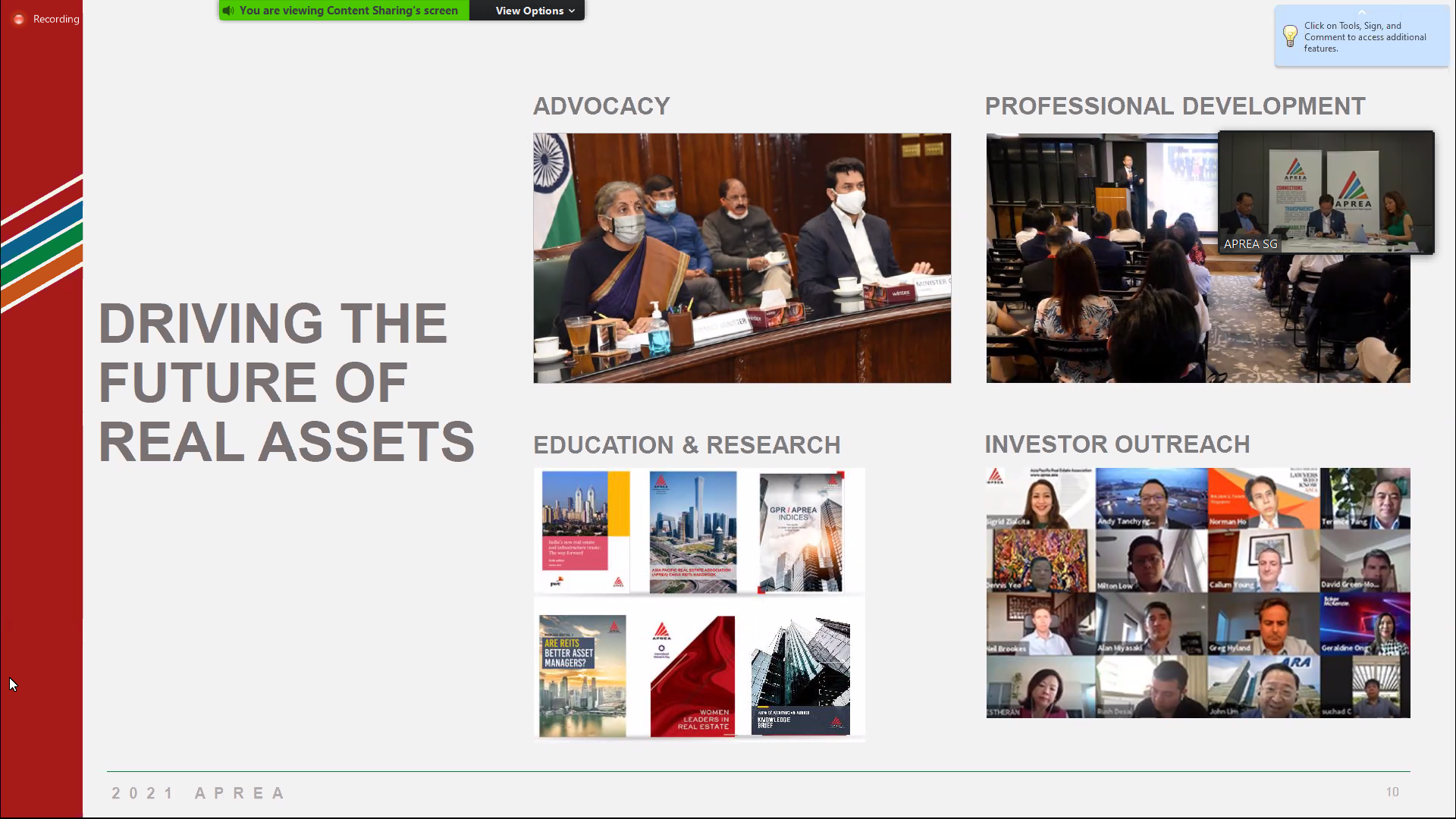 APREA mang đến tầm nhìn và phạm vi tiếp cận đặc biệt cho lĩnh vực bất động sản châu Á Thái Bình Dương, với mục đích tạo ra giá trị cho các thành viên thông qua các trọng tâm chính sau:
