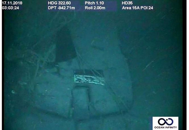 Xác tàu ngầm bám đầy rong rêu ở độ sâu 800 mét, tại khu vực ngoài khơi Bán đảo Valdes của vùng Patagonia trên Đại Tây Dương- Ảnh: Hải quân Argentina. |