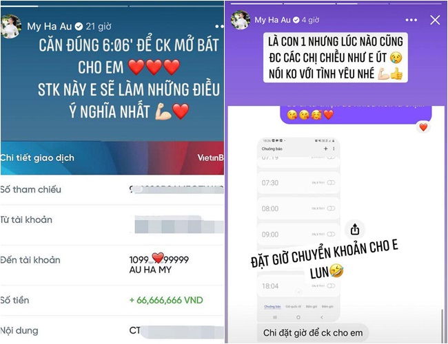 Nữ giảng viên viết: "Căn đúng 6:06 để chuyển khoản ‘mở bát’ cho em. Số tài khoản này em sẽ làm những điều ý nghĩa nhất". Kèm theo chia sẻ, Hà My còn gắn nhiều icon trái tim khiến nhiều người liên tưởng đến chuyện yêu đương.