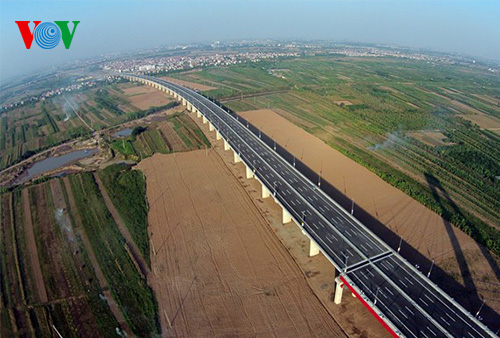 Phần cầu chính của cầu Nhật Tân dài hơn 3.750m, đường dẫn 5.170m, rộng 33,2m. (Ảnh: Huy Hùng/TTXVN) |